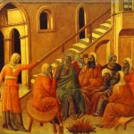 Sur ces mots le créateur de l’homme répondit à Pierre: “Que me dis-tu, Pierre, mon ami? Tu ne me renieras pas? Tu ne fuiras pas? Tu ne me rejetteras pas? Je le veux bien moi aussi, mais ta foi est chancelante, et tu ne résistes pas aux tentations. Tu te rappelles comment tu as failli te noyer, si je ne t’avais pas tendu la main? Car tu as bien marché sur la mer, comme moi-même, mais aussitôt tu as bronché, et bien vite tu as succombé. Alors j’ai couru à toi qui criais et disais: “Hâte-toi, saint, sauve ton troupeau”. (Romanos le Mélode)